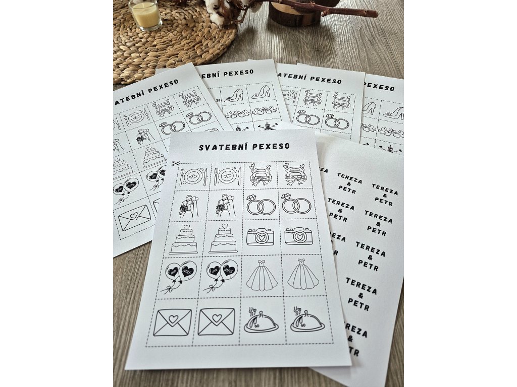 Hledáte zábavu, která potěší malé i velké svatebčany? Naše svatební pexeso je ideální volbou! Tato oblíbená hra se postará o úsměvy, smích i milé chvíle během svatebního dne.